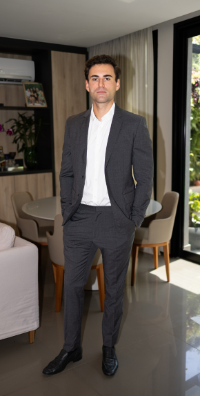 "Como advogado, preciso de roupas que transmitam confiança. A Danilo Machado fez um terno impecável, com caimento perfeito. Estou pronto para o dia a dia no escritório."